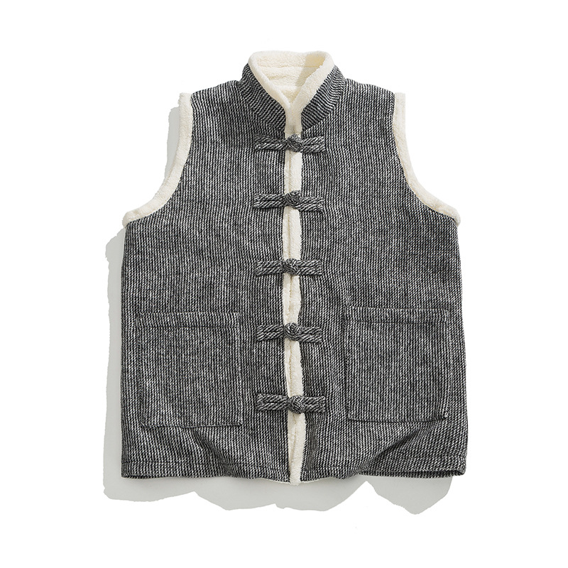 越境冬の新型男性のゆったりとしたベルベットの厚いスタンドカラーのバックル中国風の厚い綿のベスト男性のベルベットのベスト