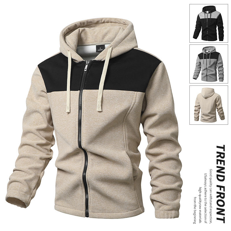 国境を越えた男性服2024秋冬男性の色合わせの奥粒パイルは、帽子付きカーディガンのカジュアルなセーターの男性コートを厚くした