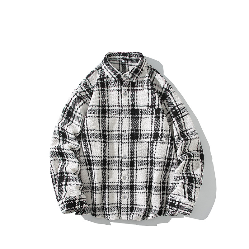 クロスボーダーのメンズの男性のカジュアルなシャツの男性の襟のジャケットのゆったりした長袖の格子のシャツの毛のコート