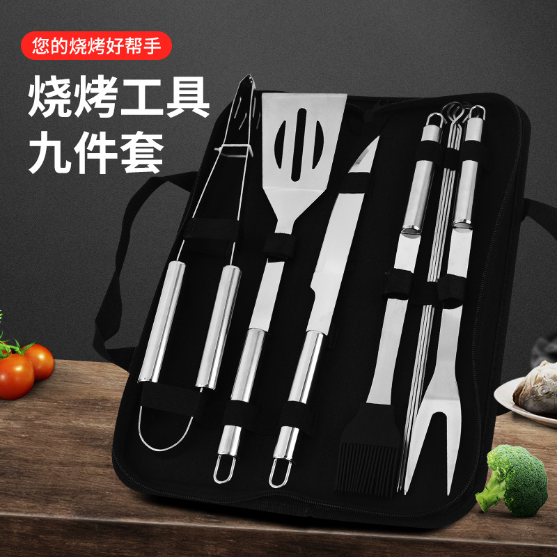 ステンレスアウトドア9点セット焼き具布袋便利式収納焼き具工場現物