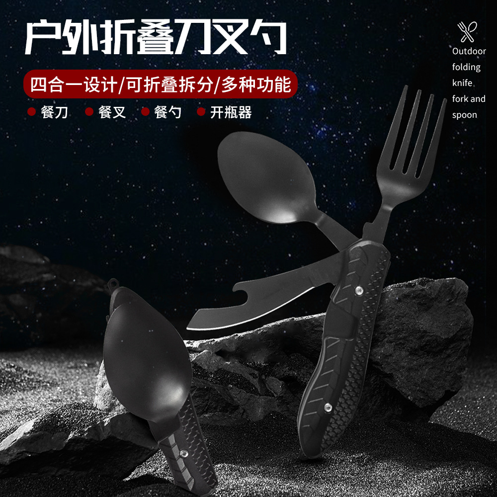 新型アウトドア多機能ナイフフォークスプーン野炊飯登山は便利に携帯できます。