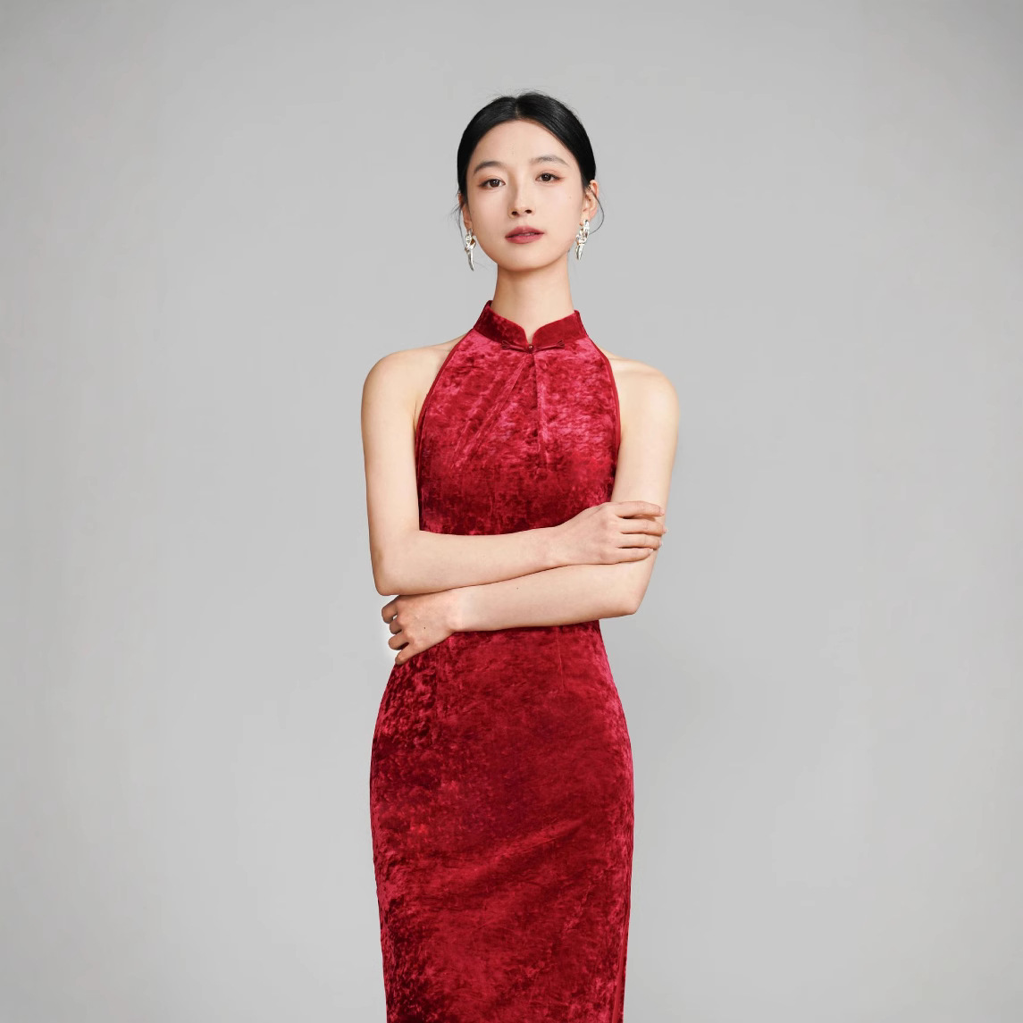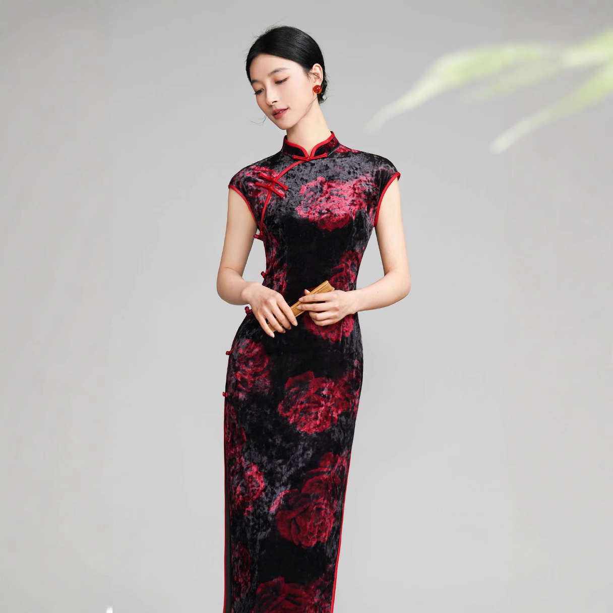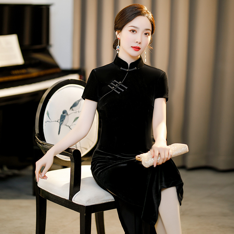 2023秋のベルベットの単層チャイナドレスのレトロな長い母親のチャイナドレスの改良ファッションチャイナドレスの卸売り