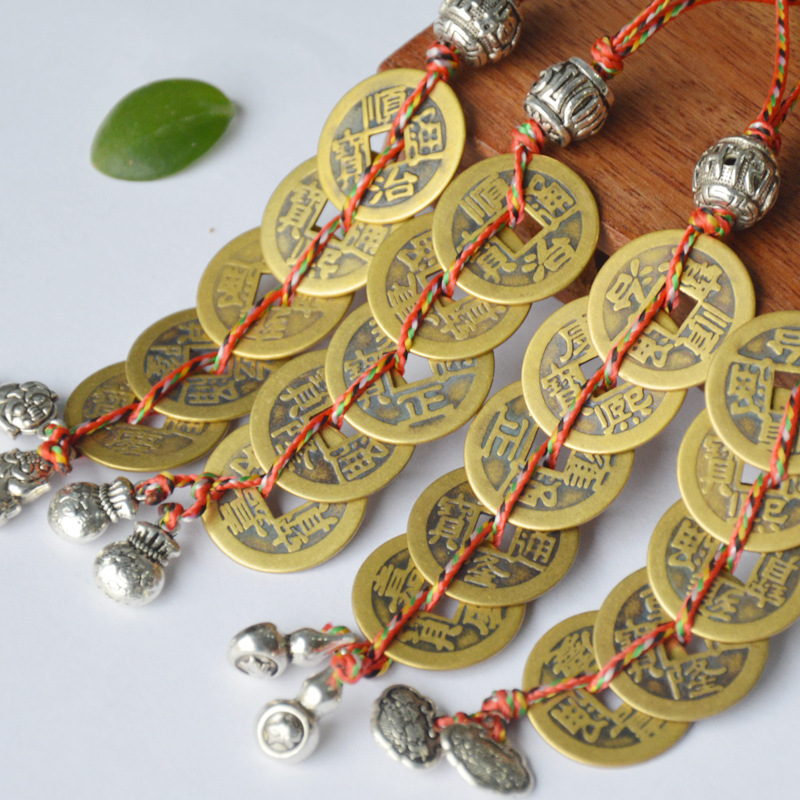 十帝の梅の花のお金の大きい銅のお金の黄色の赤い結びのペンダントの家庭の客間の寝室の装飾のペンダントは大量に卸売りします。