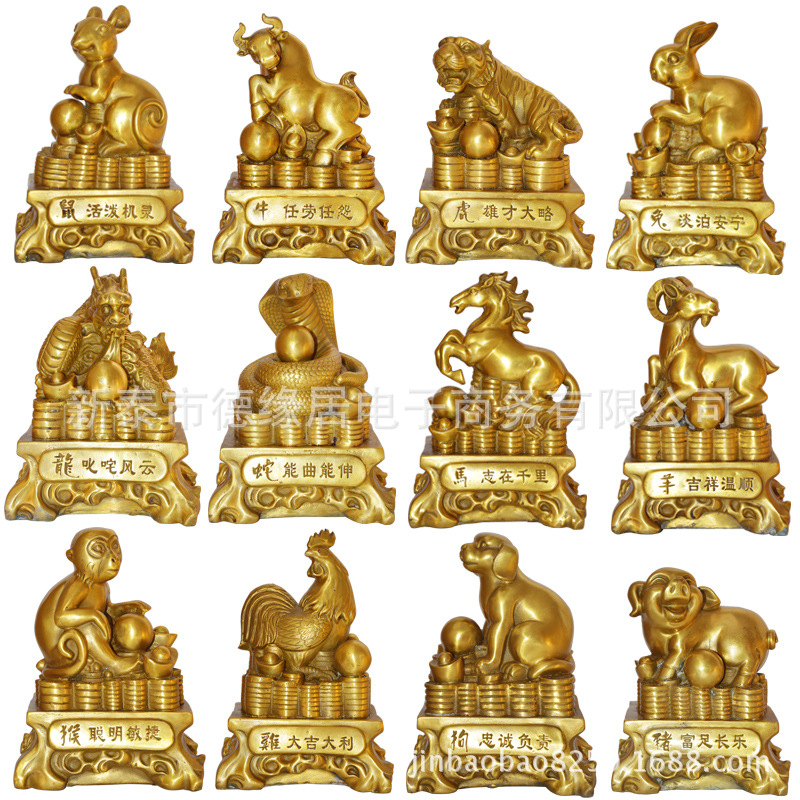 銅のお金の十二生肖の特大サイズの銅のネズミの牛の虎のウサギの竜蛇の馬の羊のサルのニワトリの犬のブタの置物の三合局