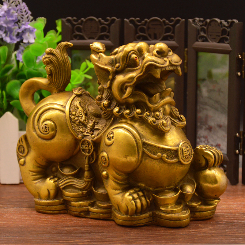 徳縁居銅ピシュカの置物の大きいサイズの雌雄はボールの元宝の家庭の工芸品の開業する贈り物の卸売りを踏みます。