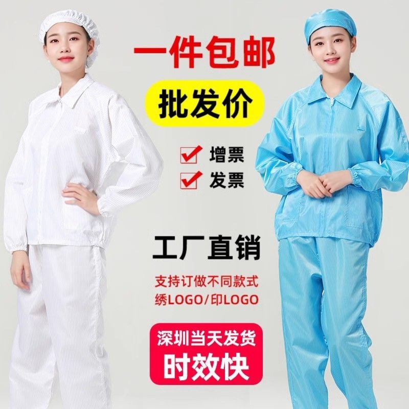 半袖帯電防止服夏通気性コート青白食品工場電子作業場保護防塵作業服