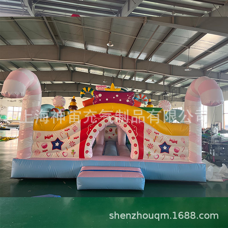 子供の屋外の大型の空気入れる遊具の広場のキャンディーのテーマの空気入れる滑り台の城のトランポリンのいたずらな堡