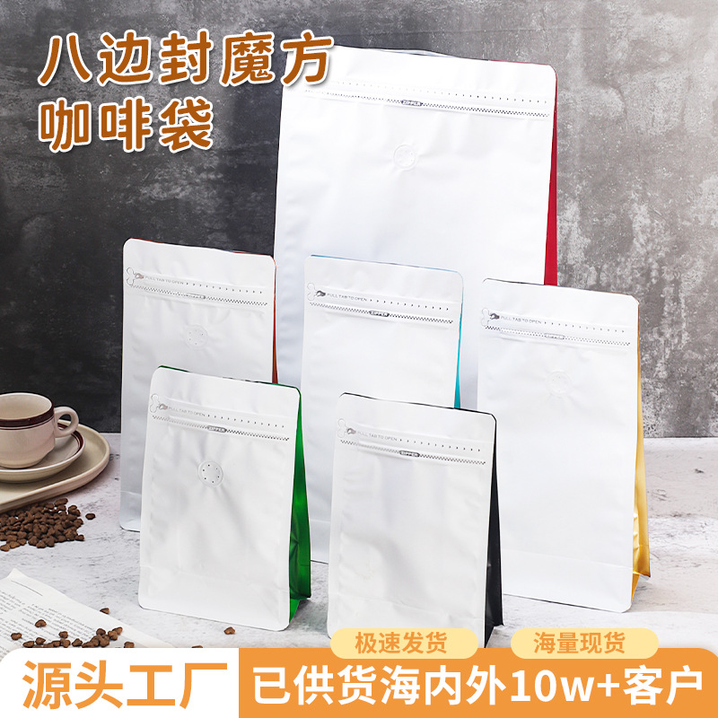 サイドカラーコーヒー袋ナッツ八辺封袋コーヒー豆自封袋浅焙煎精品豆ガス弁包装袋