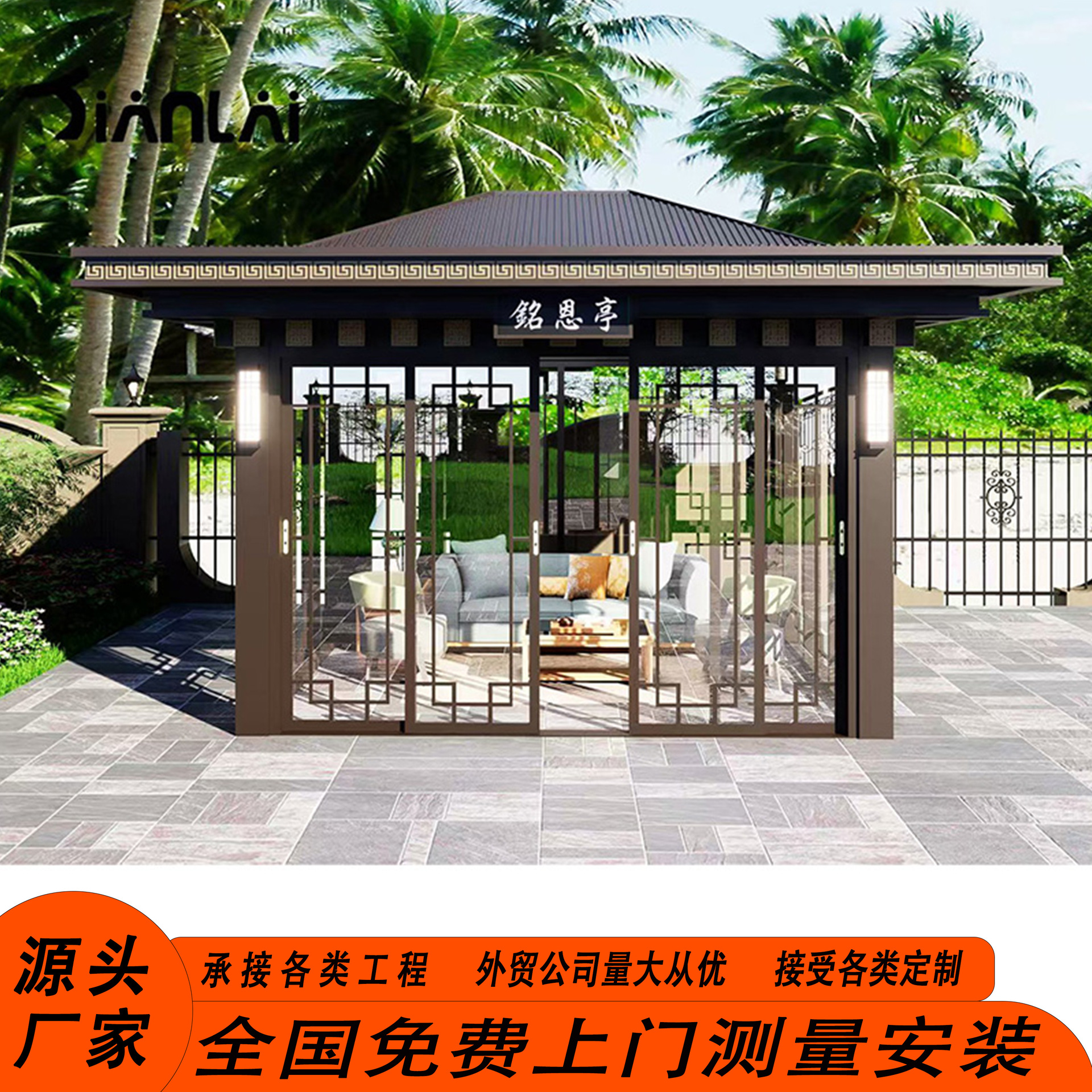 アルミ合金レトロ屋外パビリオンガーデンレジャーティールーム防風性と耐雨性サンシェード断熱パビリオン中国風の風景パビリオン