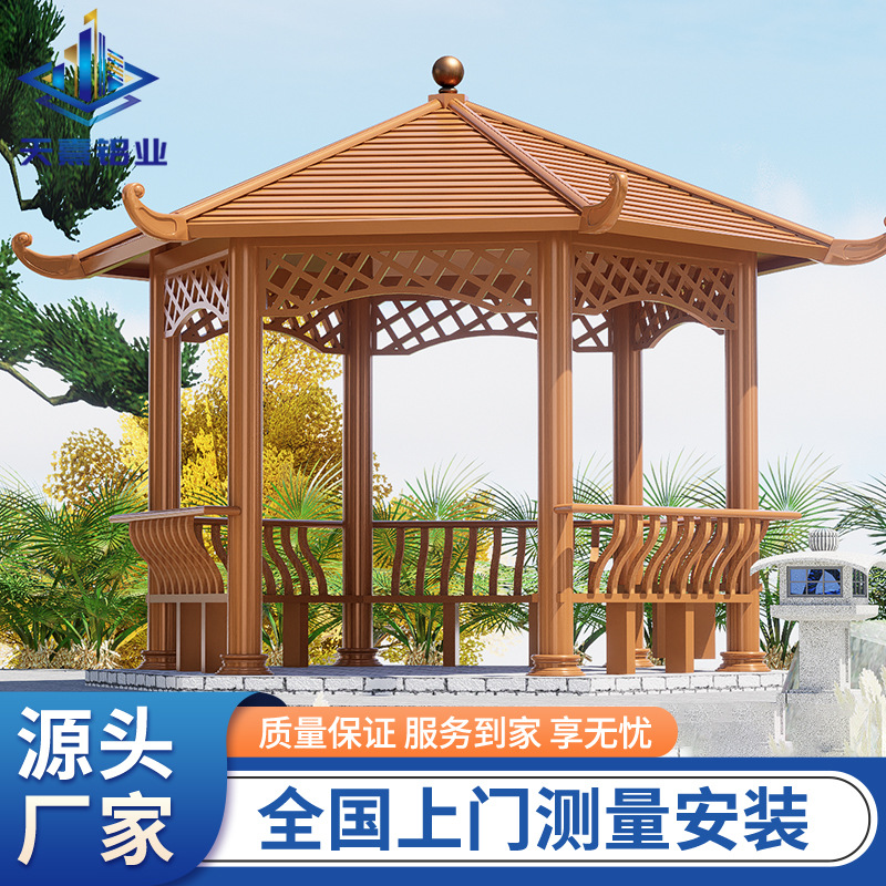アルミ合金屋外日除け別荘花園模造古凉棚公園庭園木目古建防腐木六角凉亭