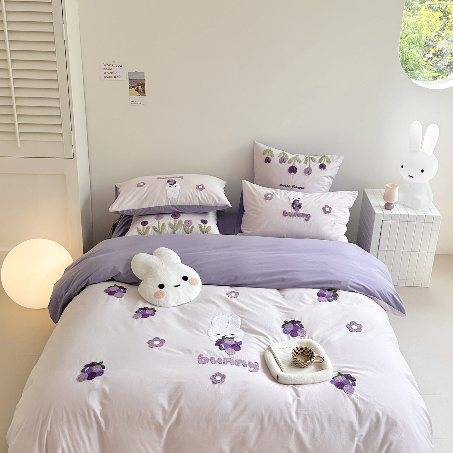 2025年新作 ウォッシュドコットン4点セットシリーズ グレープラビット 1.2mベッドシーツ 3点セット グレープラビット