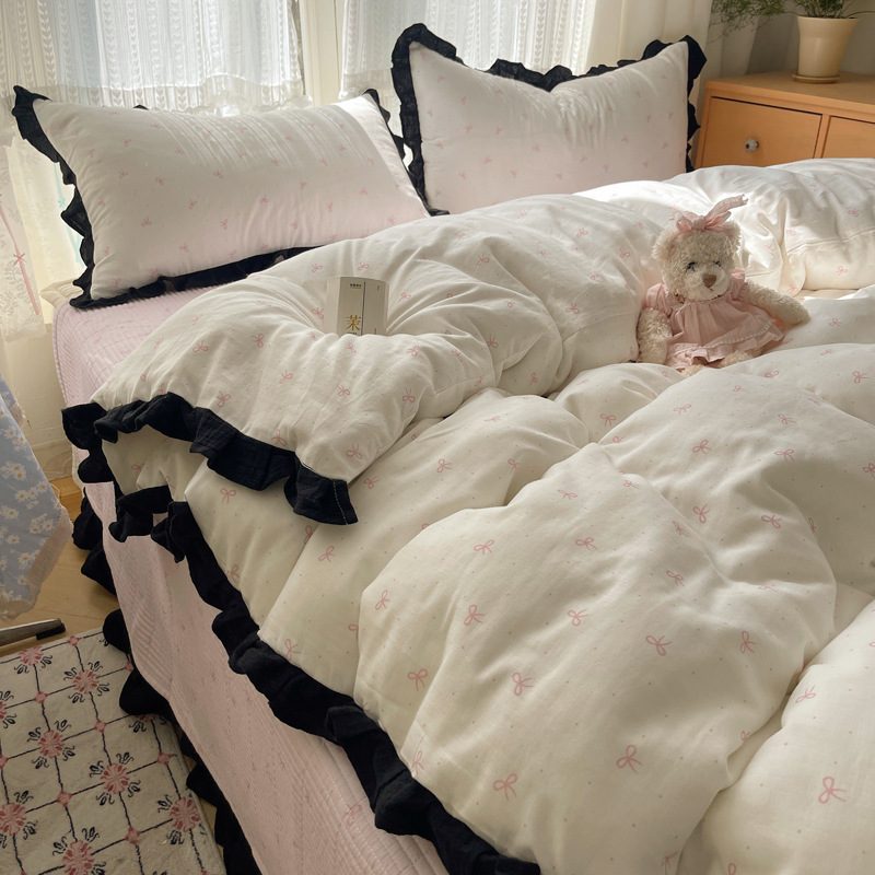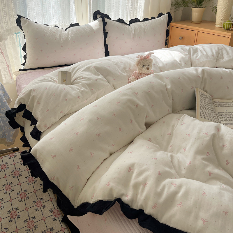 2025 新韓国スタイルウォッシュコットンベッドカバー 4 点セットライブホットモデル 200*230 ベッドカバー 180 キルトカバー 4 点