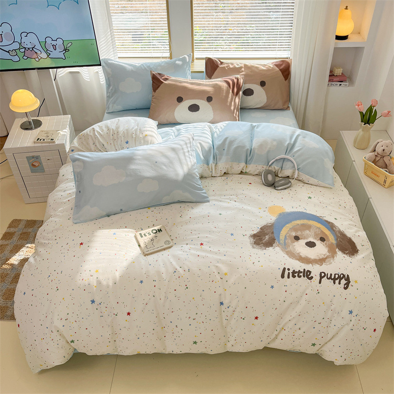 2025年新作 13370 キュートスタイルプリント 4点セット 1.2mベッドシーツ 3点セット キュートドッグ