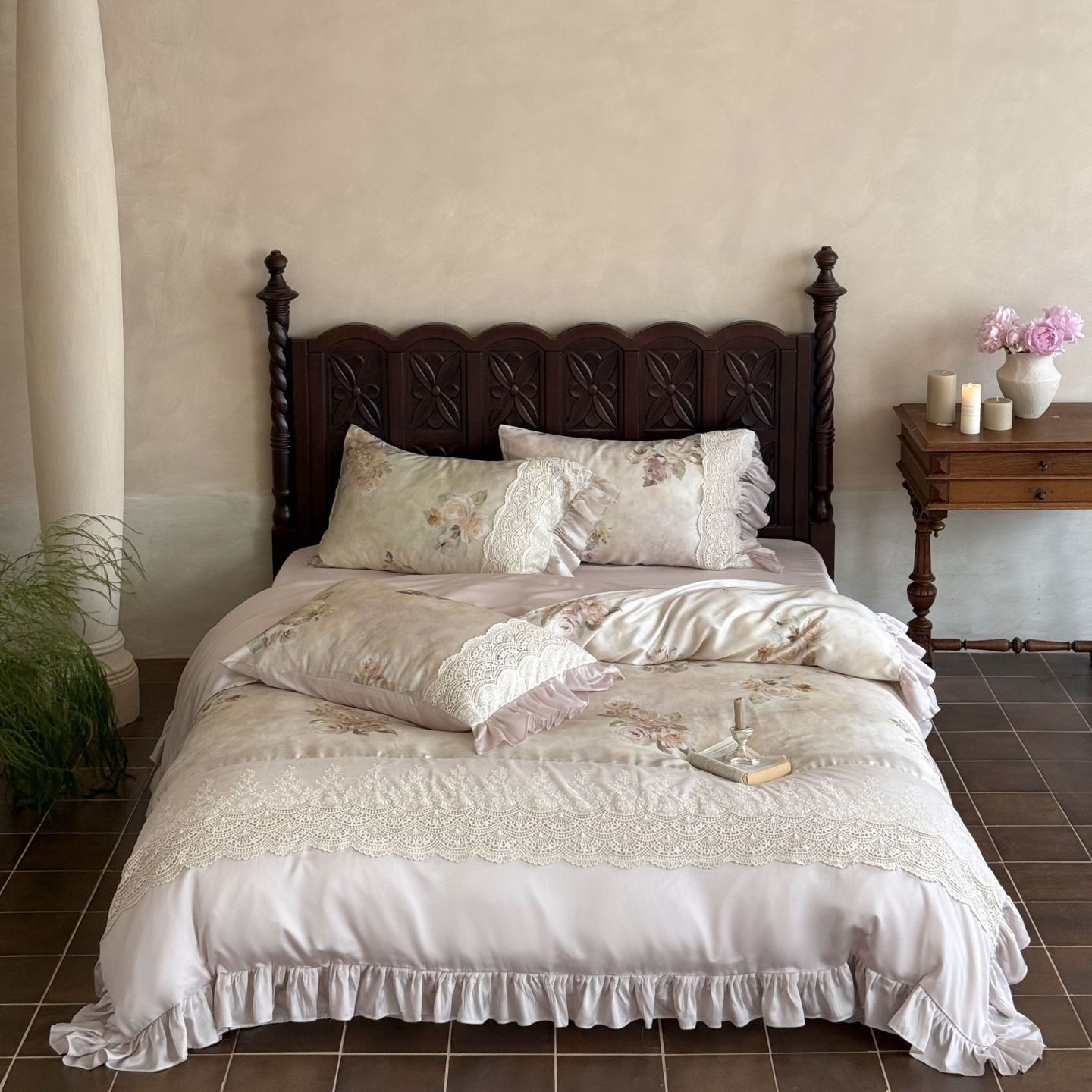 2025年新作 フレンチクラフトシワ糸4点セット 1.5mベッドシーツ4点セット 春の手紙