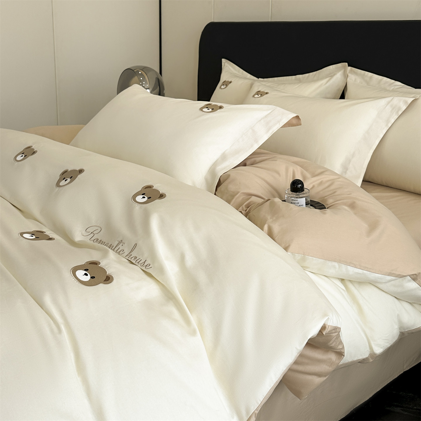 2025年新作 ウォッシュドコットン スポット刺繍 4点セット ベティシリーズ 1.2mベッドシーツ 3点セット クマ-ミルク