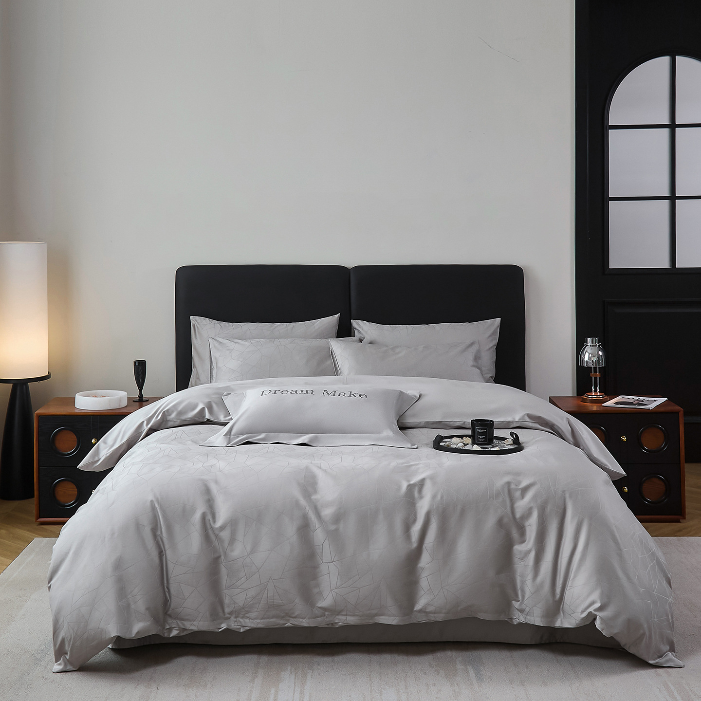 2025年新作 高級サテン100番手長綿ジャガード4点セット-明るい光と影1.2mベッドシーツ3枚