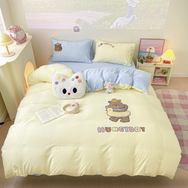 2025年新作韓国風ワッペン刺繍4点セット-ファーマンシリーズ1.5mベッドシーツ4点セット