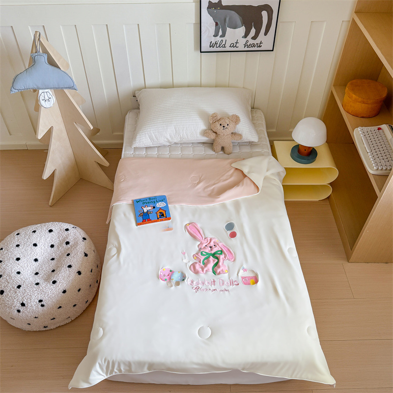 2025 新タイプ A 本物のクールなパッチ刺繍子供用サマーキルト 150*200 センチメートルウサギの女の子