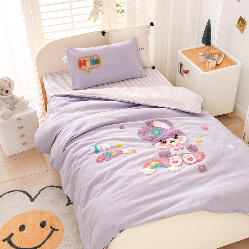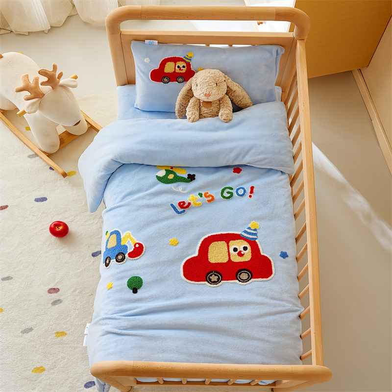 2024 新タイプ A 230 グラムフルマットミルクベルベット子供の漫画刺繍入りキルトカバー 3 点セットシングルキルトカバー 120*