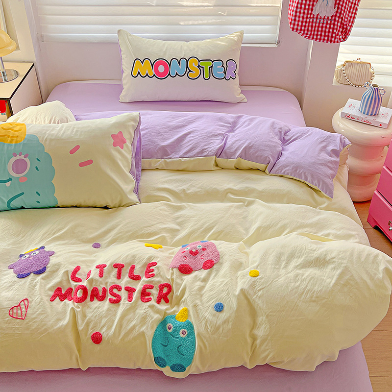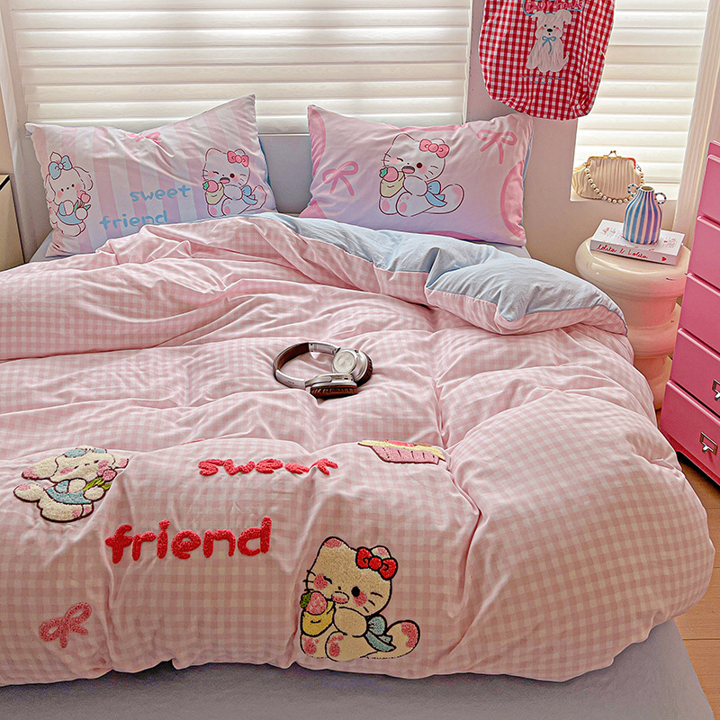 2025 新しい新学期シーズンホットセールパッチ刺繍漫画スーパーソフトクラウドソフトコットン漫画シリーズ 4 点セット 1.5 ベッドシーツ