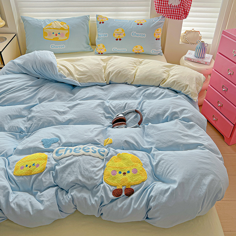 2025 新大バージョン漫画タオル刺繍 4 点セット 1.5 メートルベッドシーツ 4 点セットキルトカバー 150*200 チーズ