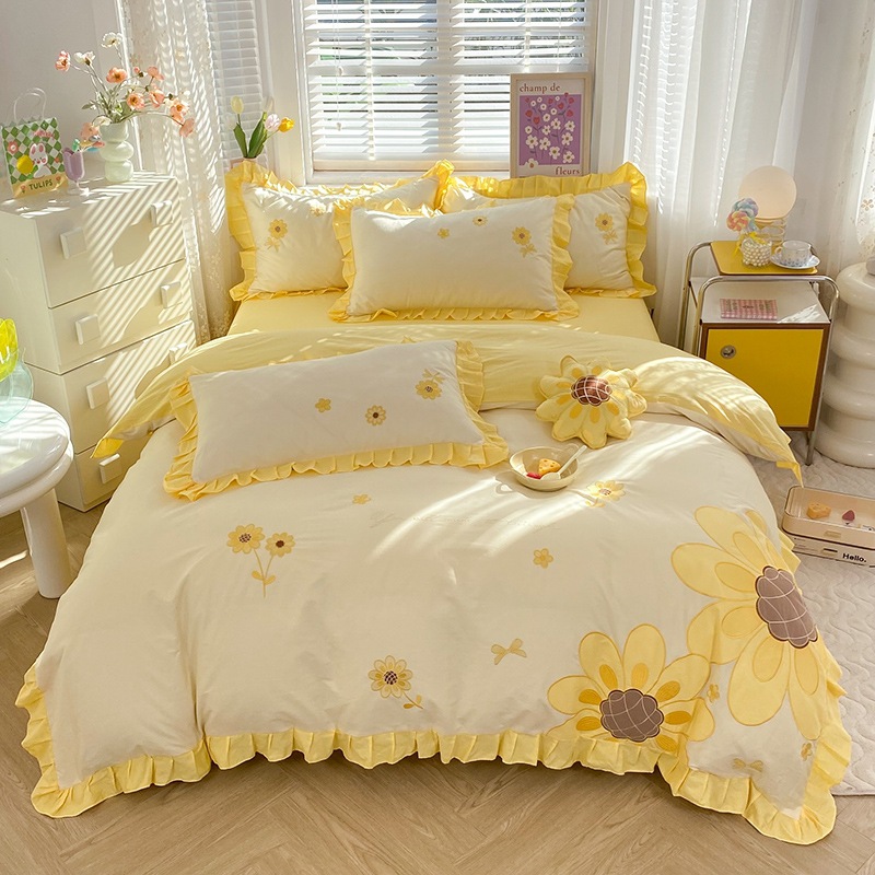 2025年新作韓国風ワッペン刺繍4点セット-ひまわりシリーズ1.5mベッドシーツ4点セット