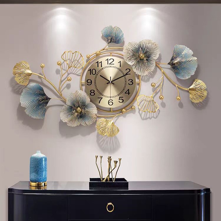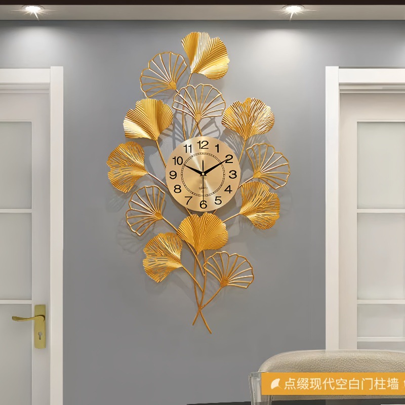 イチョウの葉の掛け時計のファッションのアイデアの時計のリビングルームの家庭用レストランの時計の豪華な軽い豪華なイチョウの葉の芸術の掛け時計