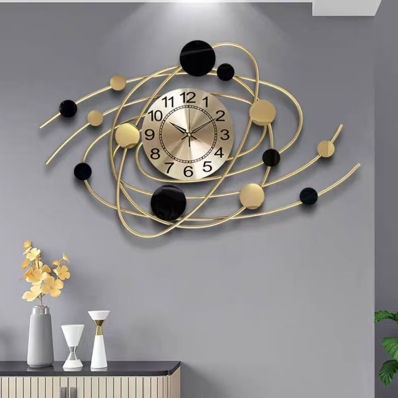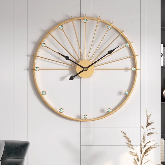 新型軽豪華創意家庭用掛け時計鉄芸個性装飾静音時計客間極簡芸術時計壁時計