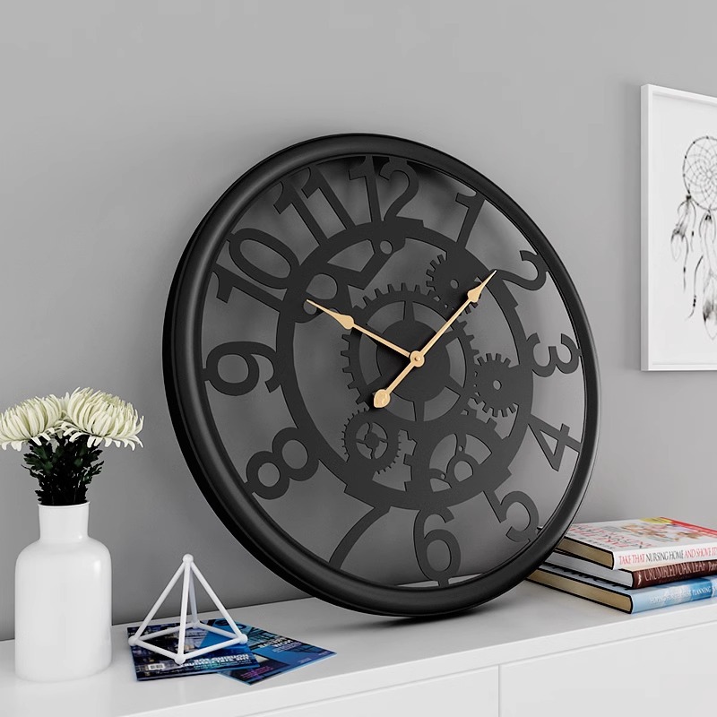 クロスボーダー新型レトロ鉄芸歯車掛け時計客間時計カフェバー装飾透かし彫り歯車壁時計