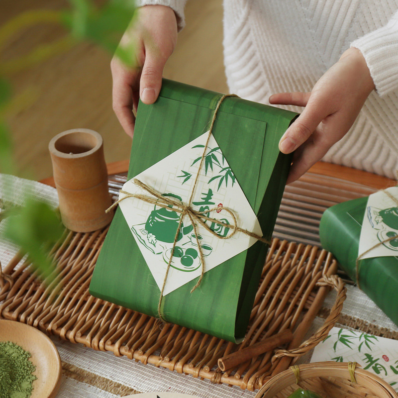創意的な手作りの艾草青団は果物を包んで箱を包んで清明な贈り物の箱の長方形の包装の緑豆の餅の箱を持ちます。