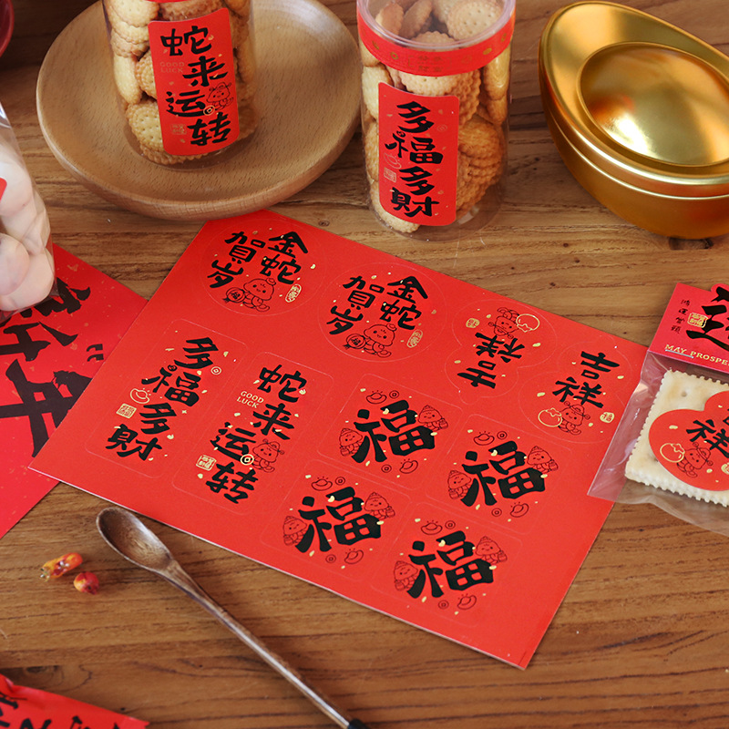 新年ギフトボックス包装箱シールキャンディーボックス鉄箱旧正月蛇年ギフトボックスシールシールステッカー装飾シール