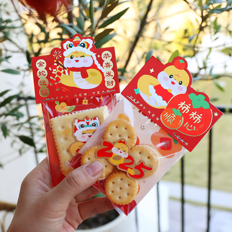 2025蛇年漫画箔押しシール焼きビスケットキャンディー新年包装ギフトボックス装飾ステッカー