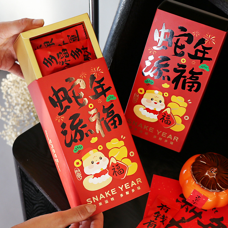 2025蛇年新型包装箱新年春節プレゼント手提げ箱牛圧延糖果ビスケット雪花ショートニング箱