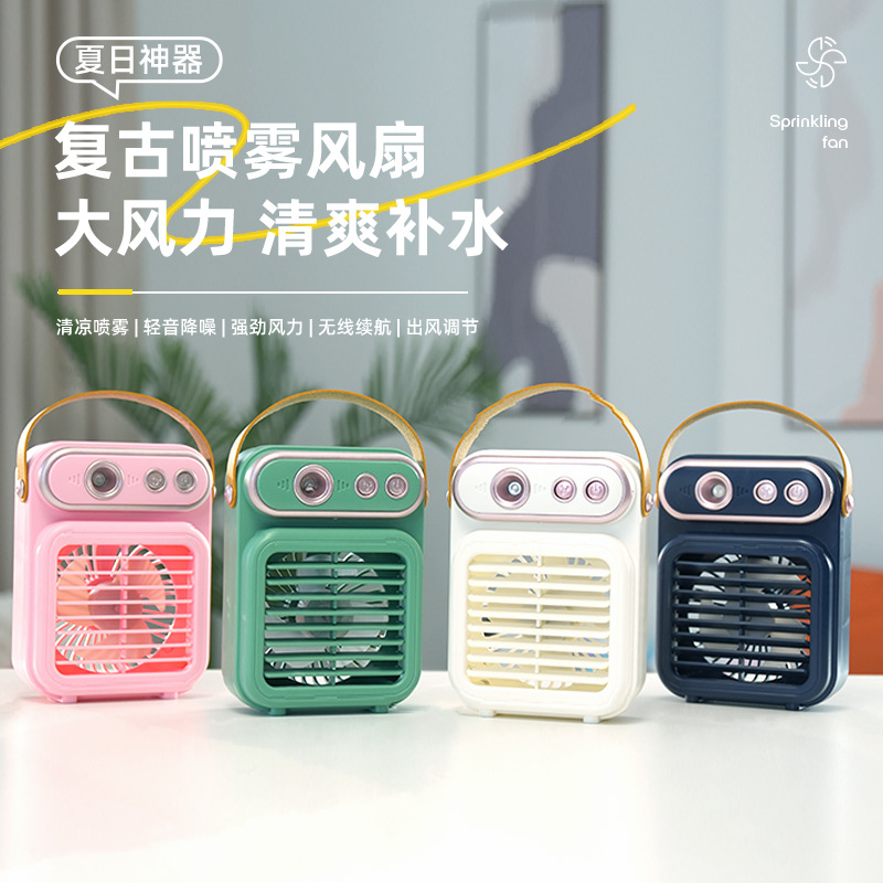 新型レトロ噴霧ファンポータブル充電可能USBデスクトップポータブル屋外ミニ小型扇風機