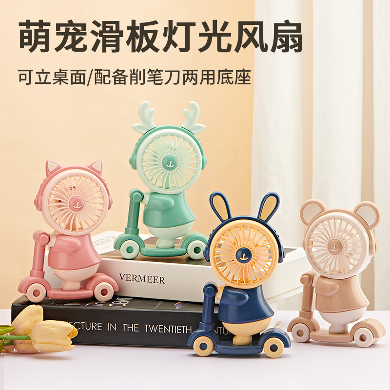 漫画萌えペットスケートボードUSBファン夜灯付き学生寮かわいい置物鉛筆削り充電ファン
