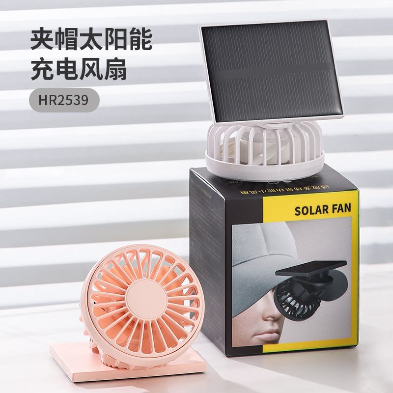 新品ソーラークリップ帽子ファンポータブル屋外クリップファンUSBソーラー充電帽子扇風機