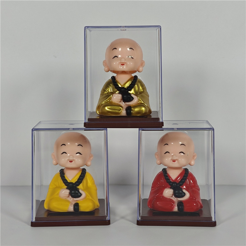 2.5寸の太陽エネルギーは小僧の小沙弥木魚和尚の仏教の文創工芸品の車の置物をうなずきます。
