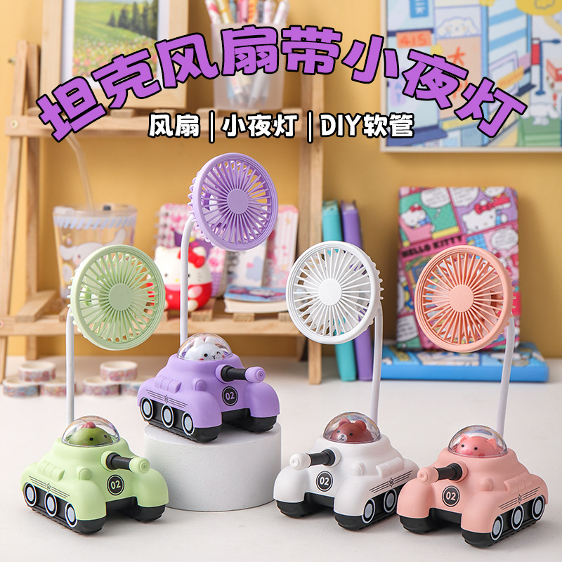 アニメの小さい戦車のデスクトップのミニ扇風機の子供は携帯で充電して夜の明かりの小さい扇風機の置物の扇風機を持ちます。
