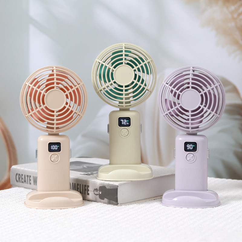 国境を越えた新しいデジタルディスプレイハンドヘルドファン USB 充電強風デスクトップ携帯電話ホルダー扇風機折りたたみファン