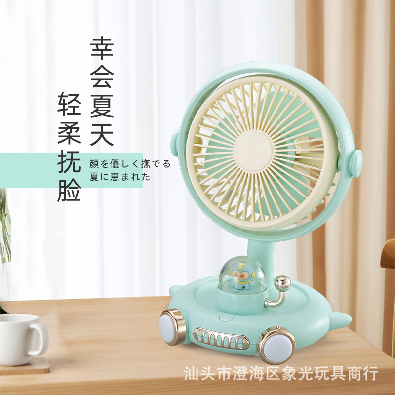 新型萌えペット飛行船扇風機usb充電式デスクトップ扇風機家庭用二合一小夜灯扇風機