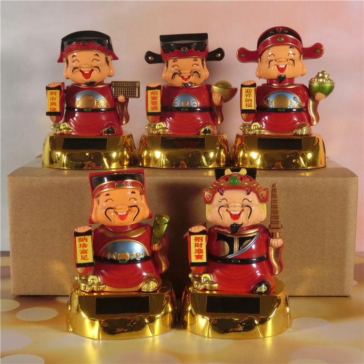 太陽エネルギーはうなずいて財神爺自動車レジで財を募集して五路元宝財神店の装飾品を飾った