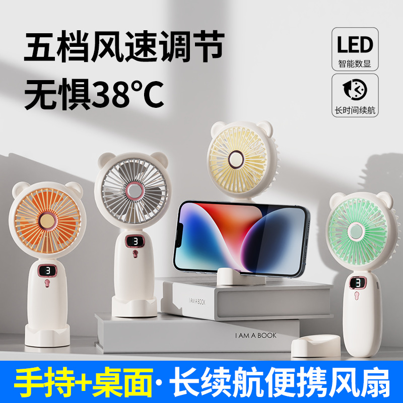 新型usb充電手持ち5速ミニファンデジタル表示シフト付きミニファン漫画熊小型ファン