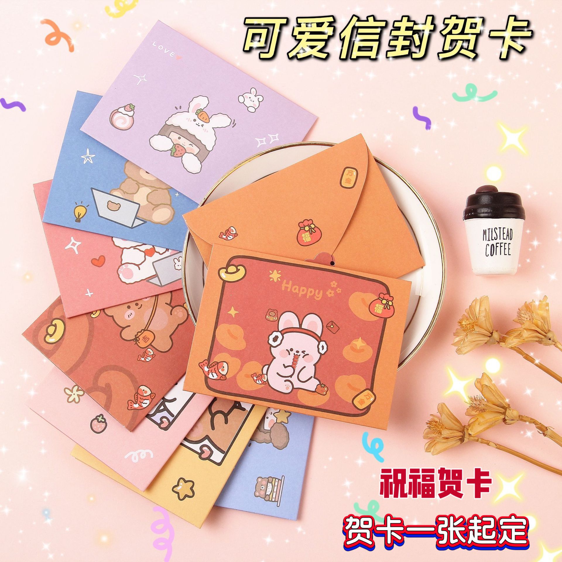Ins漫画バレンタインブーケ封筒小さなグリーティングカードかわいい折りたたみ诞生日祝日祝福感谢ギフトメッセージ