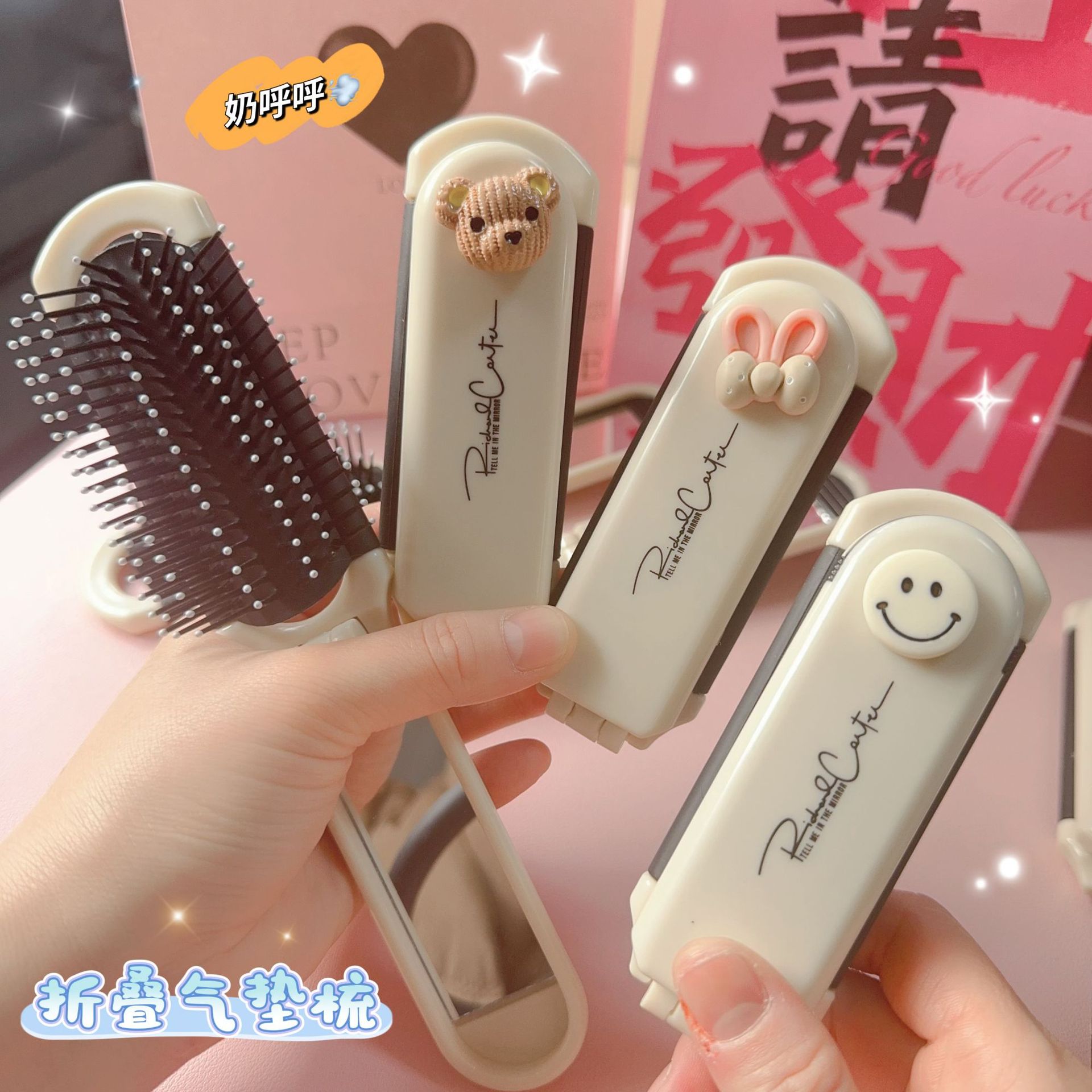 携帯型櫛エアバッグエアマット櫛折り畳み可能な鏡櫛一体学生女性順髪櫛漫画小櫛