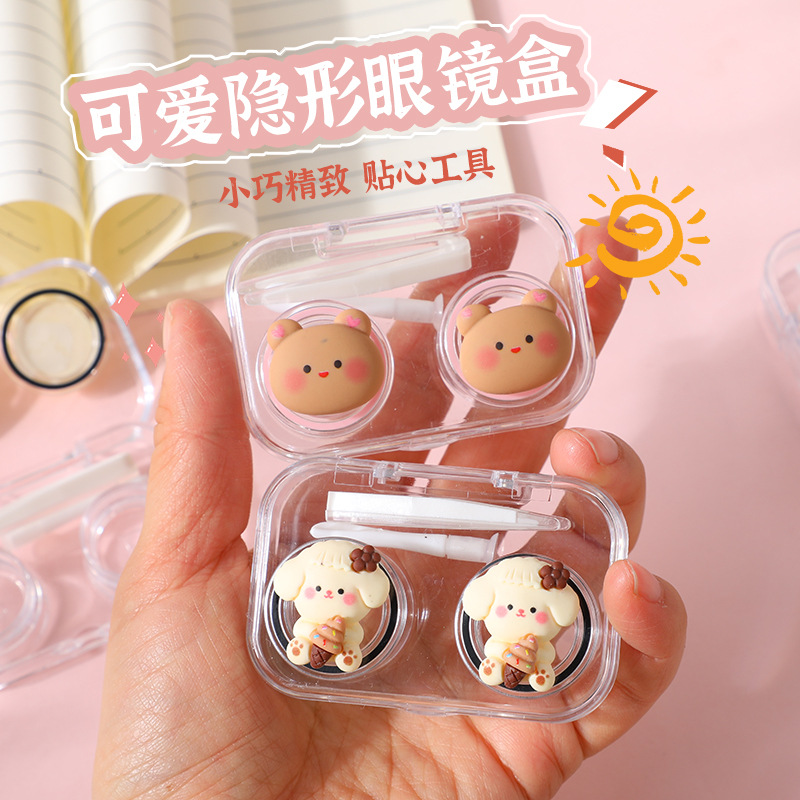 美しい瞳の箱のコンタクトレンズの箱の漫画の熊の立体の装飾は携帯して蓋の一体の看護の箱の伴侶の箱をねじらないでください。