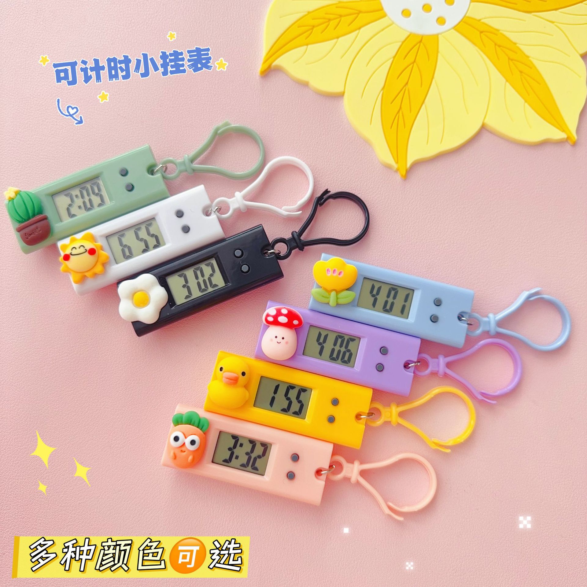 かわいいピンクのキノコ掛け時計漫画ミニ電子時計学生試験授業スケジュールカードタイマー