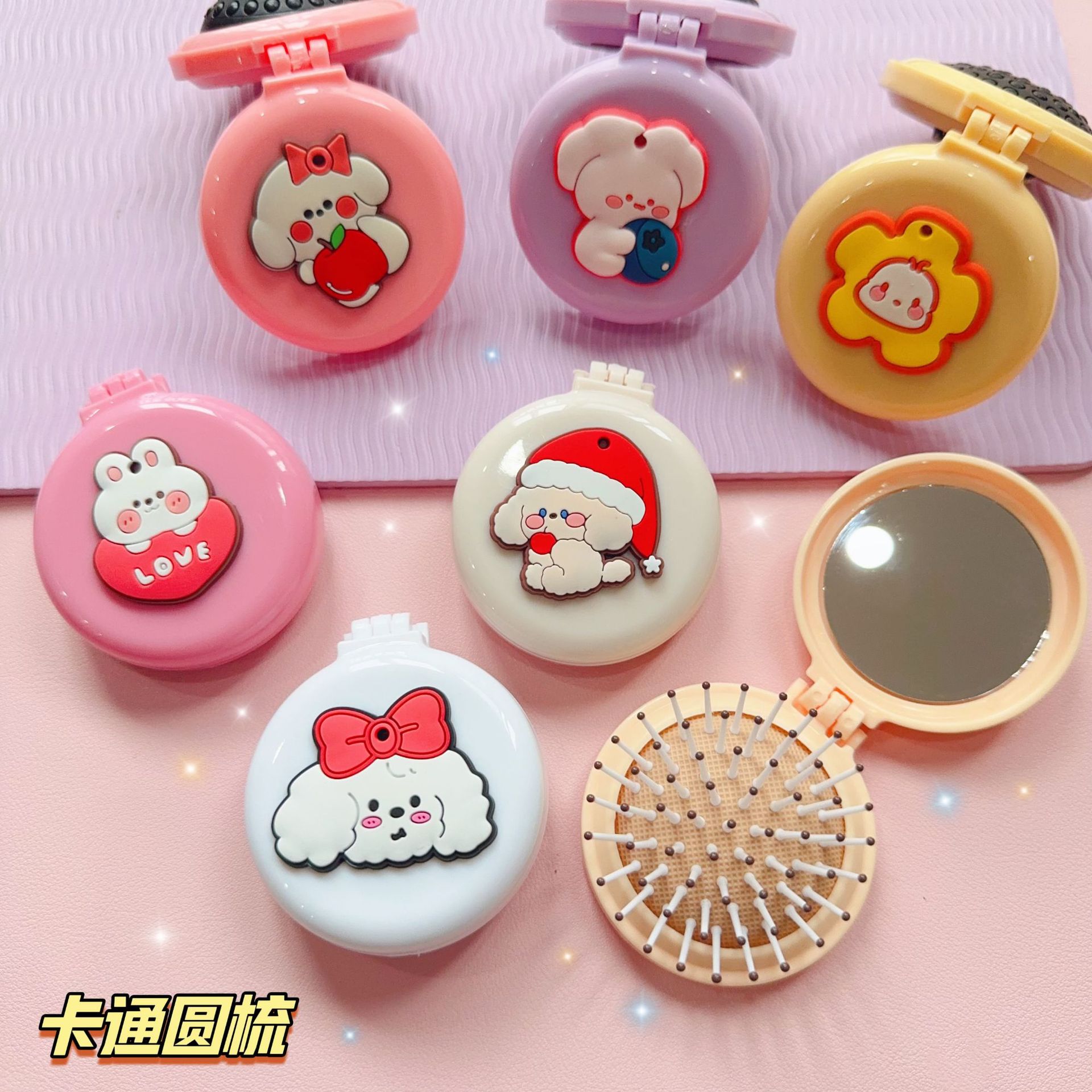 マカロンの小さい櫛の丸い鏡の美髪は順髪で可愛い家庭用のエアバッグを櫛にします。
