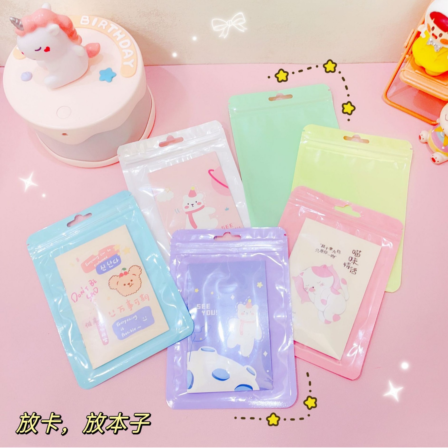 Ins風透明シンプル星自己粘着袋カードアルバム小カードpvc自己密封袋包装袋手帳分類袋