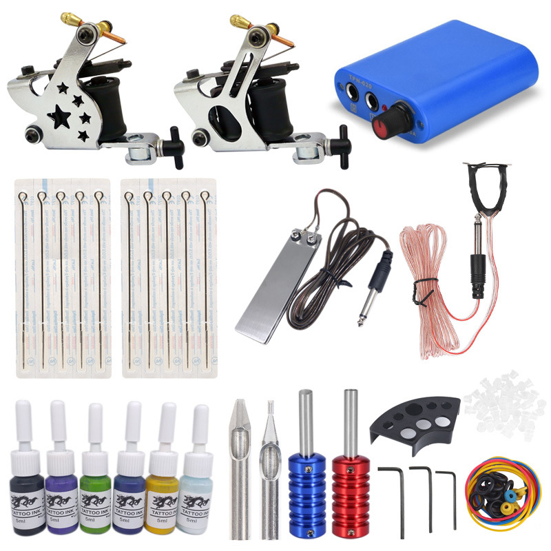 新しいコイルの刺青のマシンのセットの専門のフルセットの刺青の器材の刺青のツールの初級学生の電源は足を踏みます。