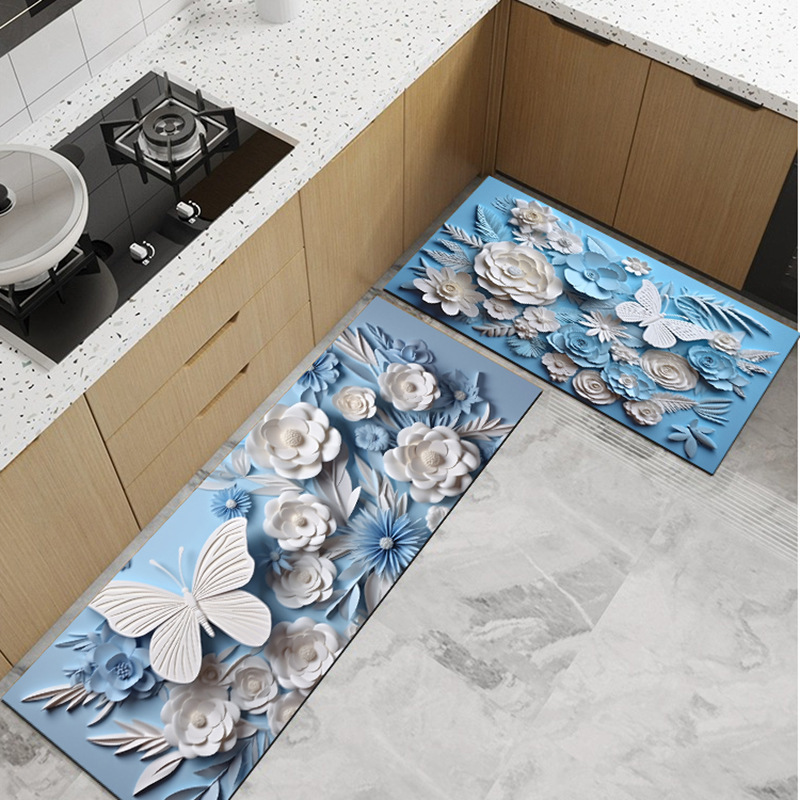 台所専用汚れ防止防汚滑り止めマット国潮シンプル油絵花柔らかい珪藻泥マットは足マットを裁断できる